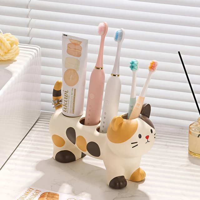 Unlike ordinary plastic holders, this ceramic stand is not only functional but also a statement piece that transforms your countertop into a charming scene. The handcrafted feel and whimsical design make it stand out, turning a simple routine into a small daily delight. Make your bathroom beautiful—and your mornings brighter—with this irresistible cat-themed toothbrush holder.