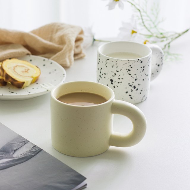 Nordic Ceramic Coffee Mug with Fat Handle – Black and White Minimalist Cup