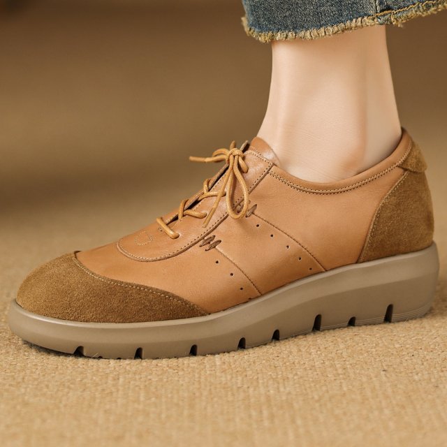 Women’s Genuine Leather Patchwork Platform Sneakers with Thick Sole
